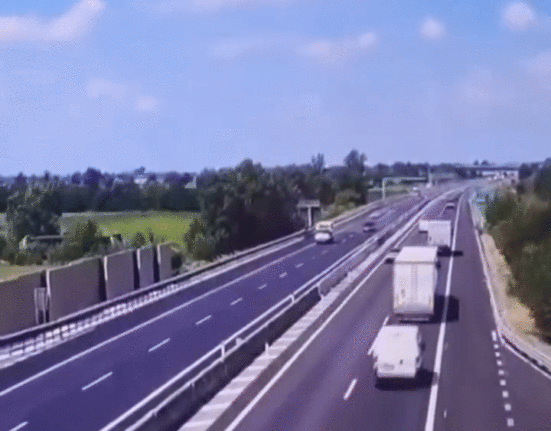 Nossa, que tragédia! Um ultraleve caiu numa rodovia na Itália, deixando dois mortos. A cena, registrada por uma câmera de segurança em Azzano