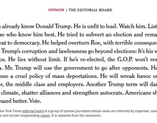Jornal afirmou que o ex-presidente “mente sem limites” e é uma ameaça à democracia. Em setembro, publicação já havia declarado apoio a Kamala
