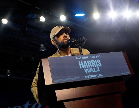 Posicionamento político de famosos tem sido decisivo para estimular eleitores a votar em candidatos a presidência; veja lista. Eminem apresenta o ex-presidente dos