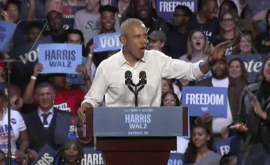 Ex-presidente discursou para apoiadores em Detroit, cidade onde o artista foi alçado à fama. Obama canta trecho de Lose Yourself, de Eminem, em