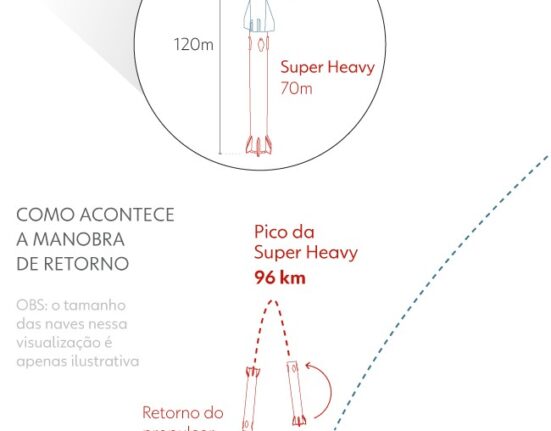 Pela primeira vez, a empresa do bilionário Elon Musk conseguiu fazer o propulsor Super Heavy voltar para a plataforma de lançamento. Manobra ajuda
