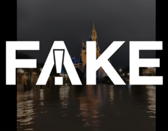 Conteúdo foi gerado por inteligência artificial. Disney aponta que foto não é real. É #FAKE que foto mostre Disney submersa após furacão Milton