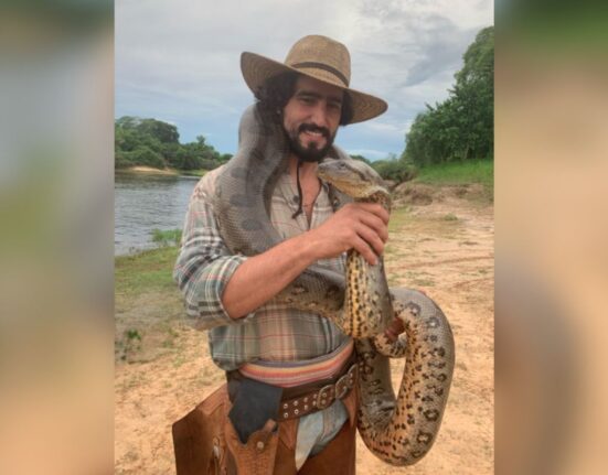 Renato Góes relembra momento 'enrolado' em sucuri do Pantanal após encontrar cobra dentro de casa no RJ