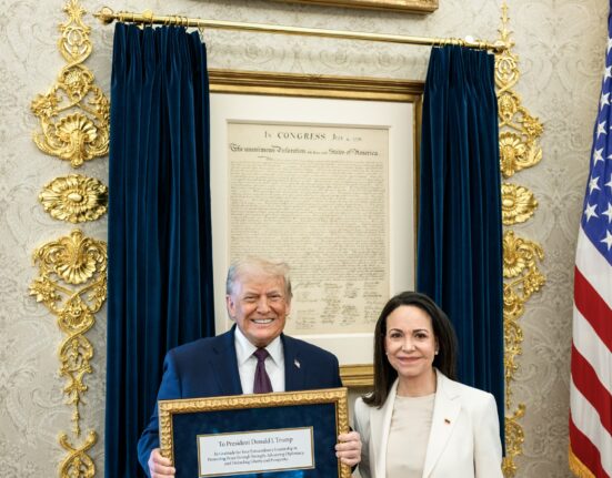 Trump diz ter recebido medalha do Nobel da Paz como 'presente' de María Corina Machado