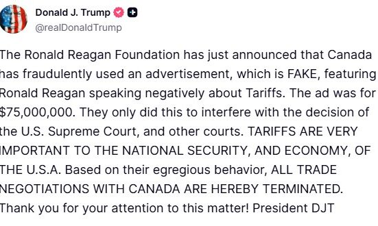 VÍDEO: veja anúncio contra tarifas que enfureceu Trump e o fez cortar negociação com Canadá