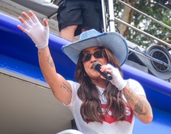 Lauana Prado anuncia sexo de bebê em cima de trio elétrico de bloco em SP