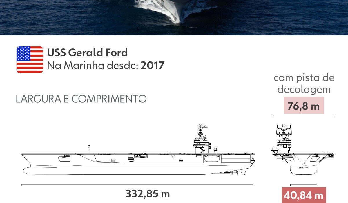 Capacidade para 5 mil pessoas e 90 aeronaves: conheça o 'letal' USS Gerald Ford, maior porta-aviões do mundo que Trump usa para pressionar Maduro; INFOGRÁFICO