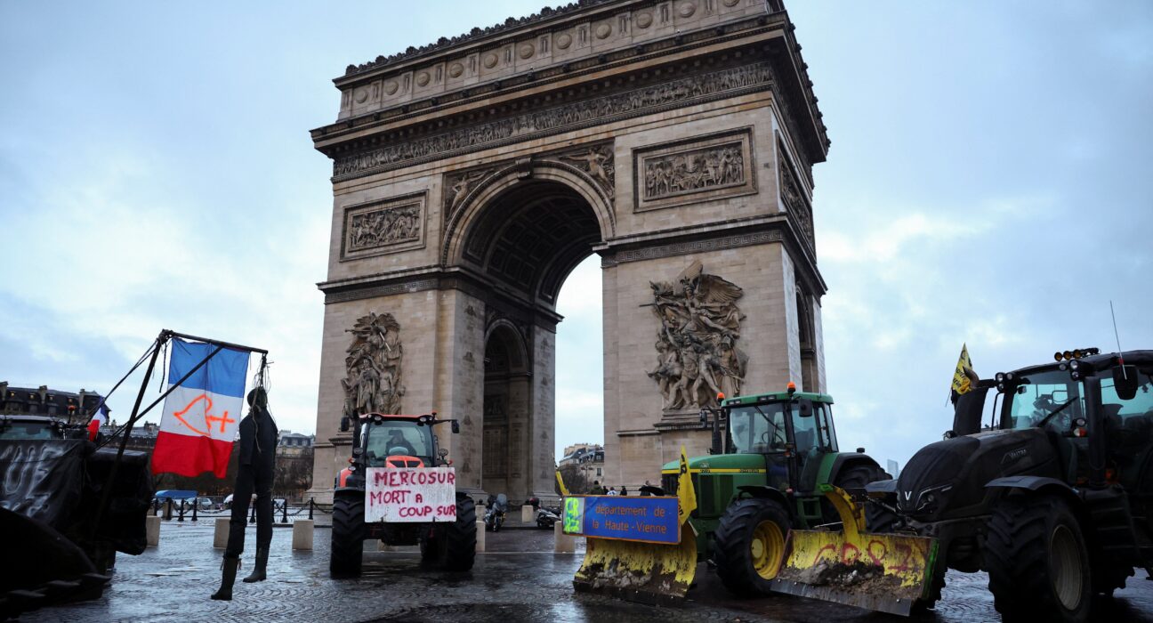 Agricultores franceses bloqueiam ruas de Paris em protesto contra acordo entre União Europeia e Mercosul