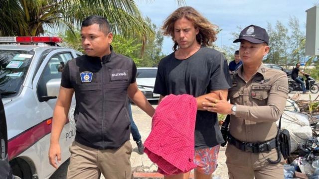 Rodolfo Sancho sendo levado pela polícia da Tailandia em 7 de agosto de 2023