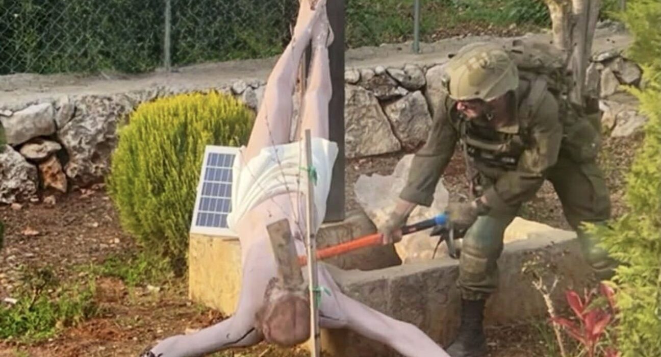 É #FAKE foto de militar de Israel substituindo estátua de Jesus Cristo danificada no Líbano; imagem foi criada com IA