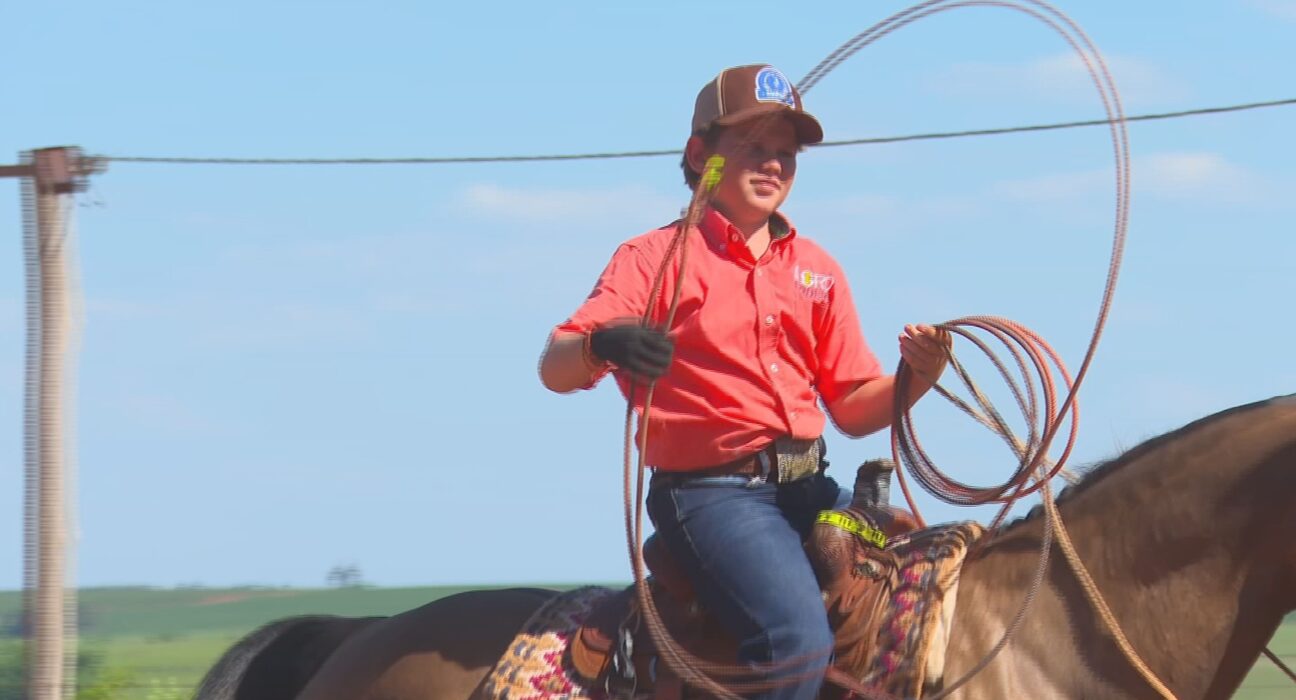 Garoto apaixonado por cavalos coleciona premiações em provas de laço