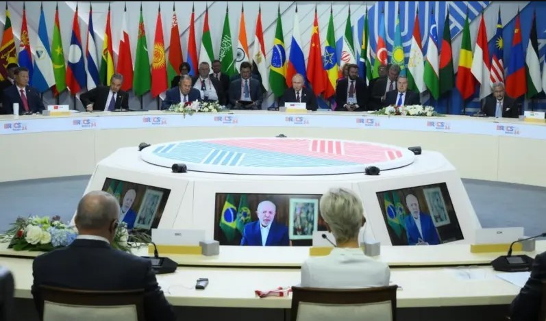 Brasil assumirá a presidência do bloco em 2025. Para especialistas, essa posição pode dar um impulso a mais na busca do país por seus objetivos no grupo. Chefes de Estado e representantes dos países participantes da reunião de cúpula do Brics durante pronunciamento do presidente Lula