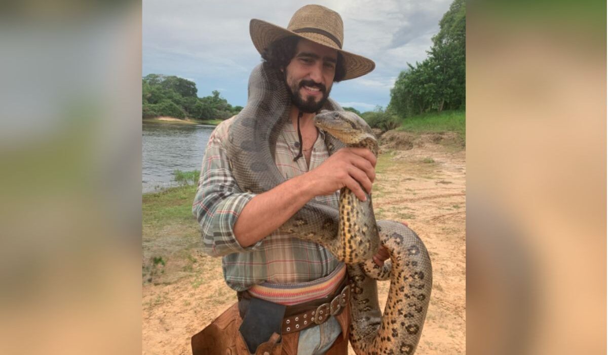 Renato Góes relembra momento 'enrolado' em sucuri do Pantanal após encontrar cobra dentro de casa no RJ
