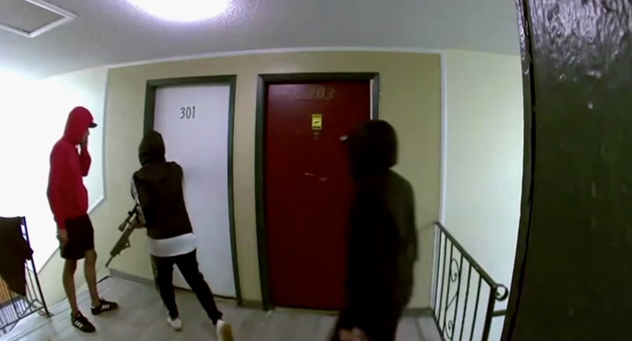 Pessoas armadas, supostamente de gangue venezuelana, entram em apartamento em Aurora, no Colorado, em agosto de 2024.