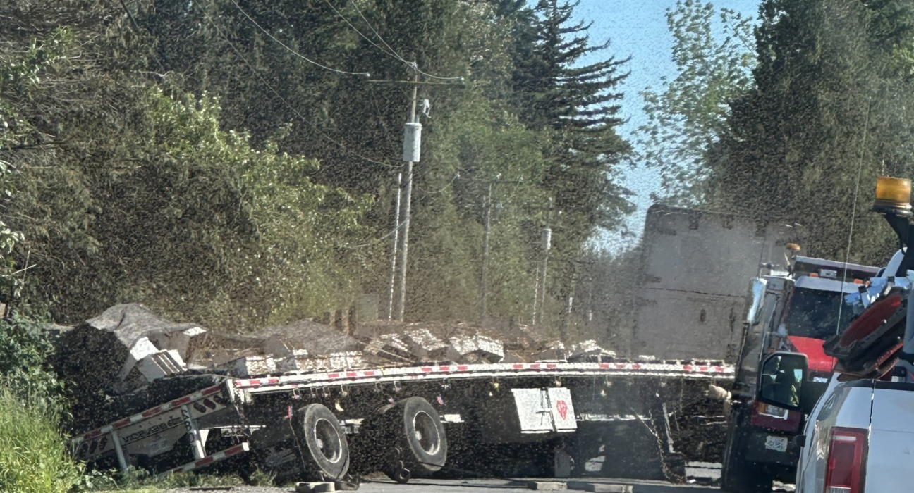 Abelhas escapam após caminhão tombar